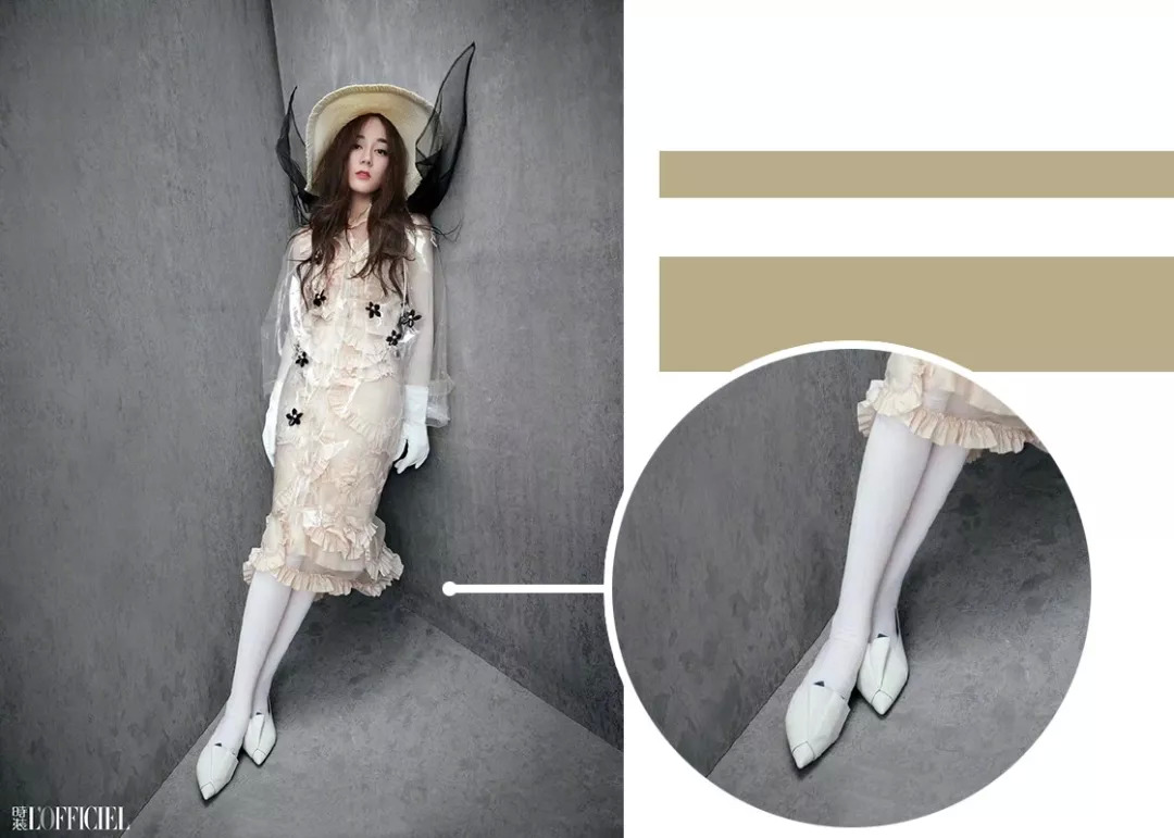 之前热巴在《时装 L'OFFICIEL》2019开年刊上,也有穿了一双褶皱设计的单鞋,尖尖的鞋头超显腿长的!