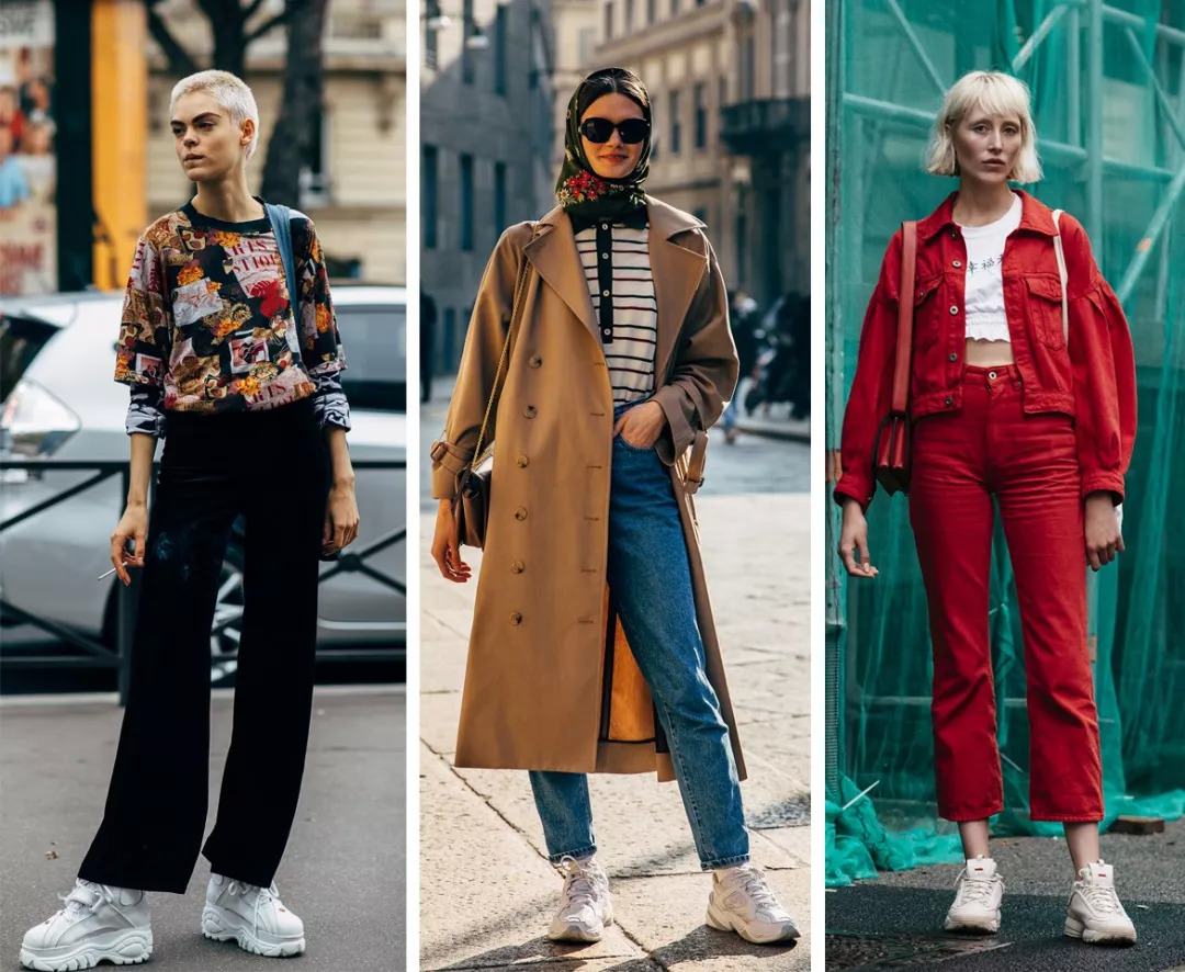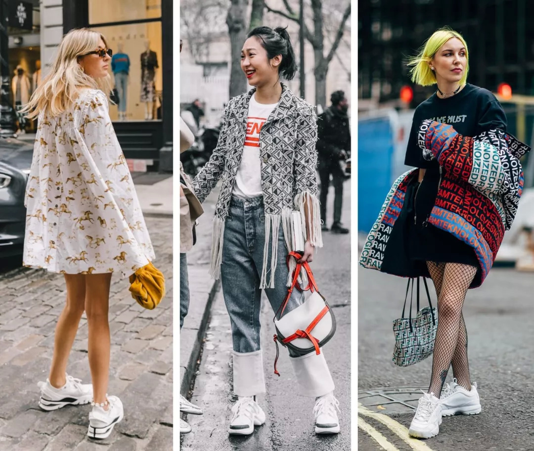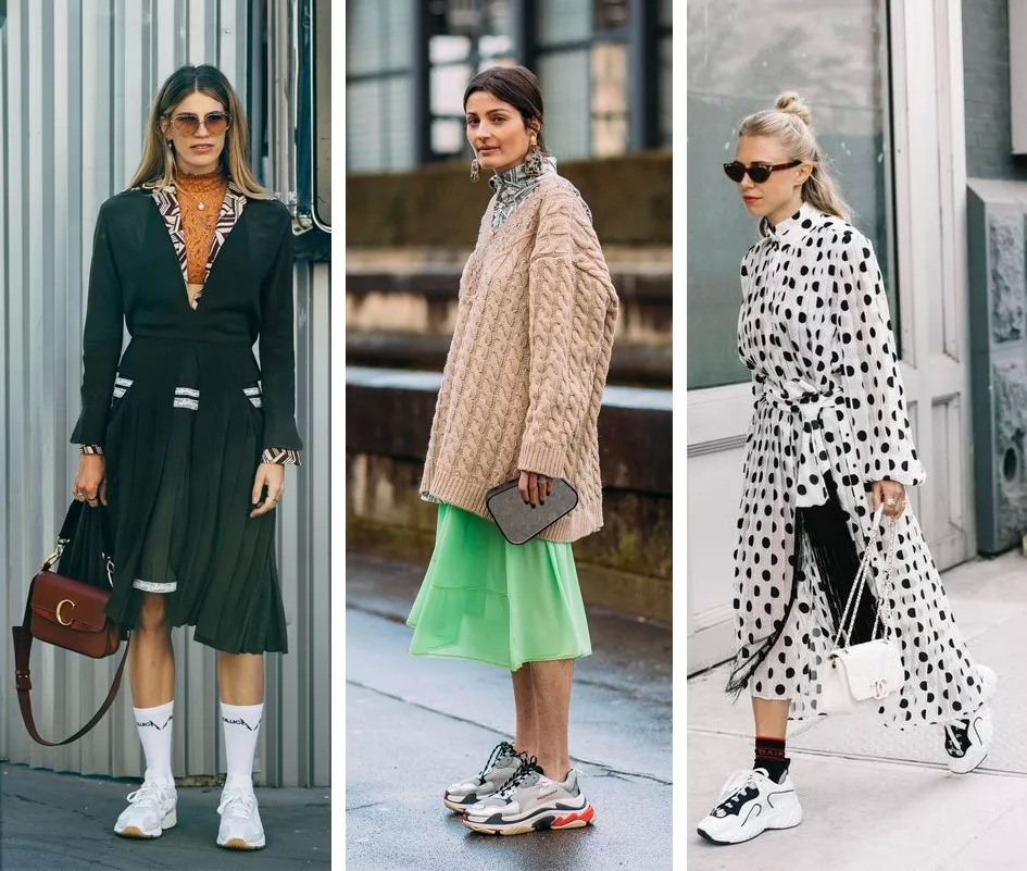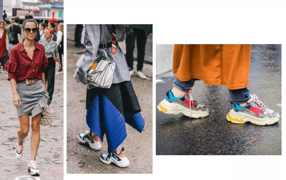 老爹鞋自带的运动休闲风,用来搭配女人味单品,正好可以起到中和作用。搭各种裙装都可以打造娘man平衡。