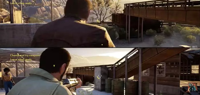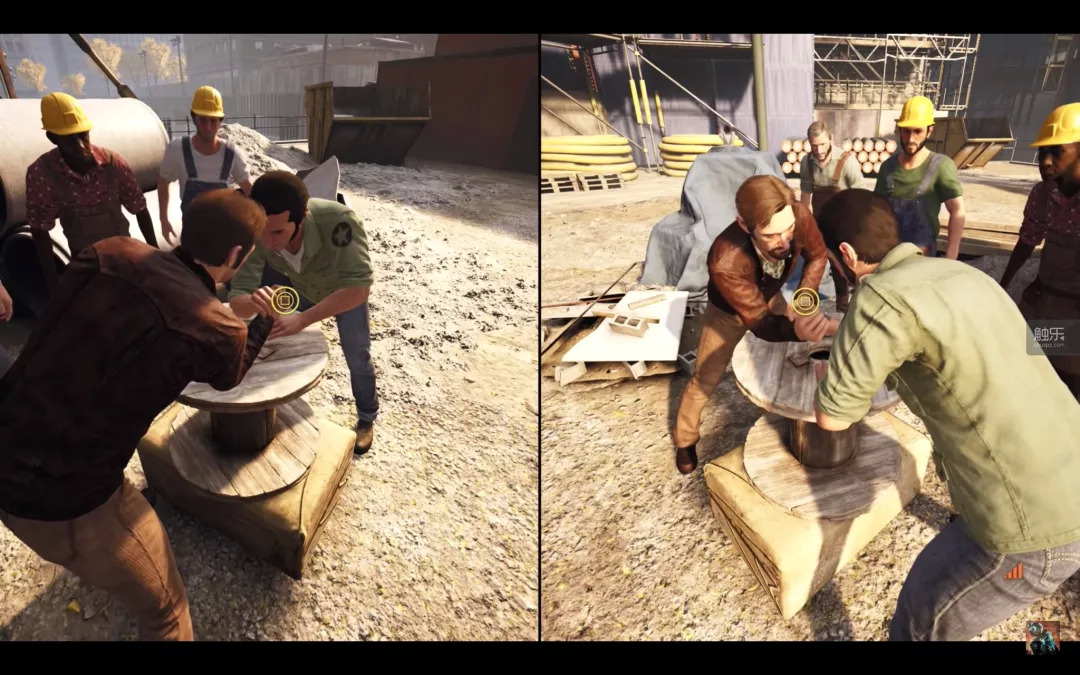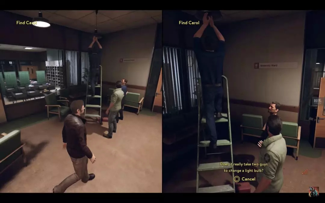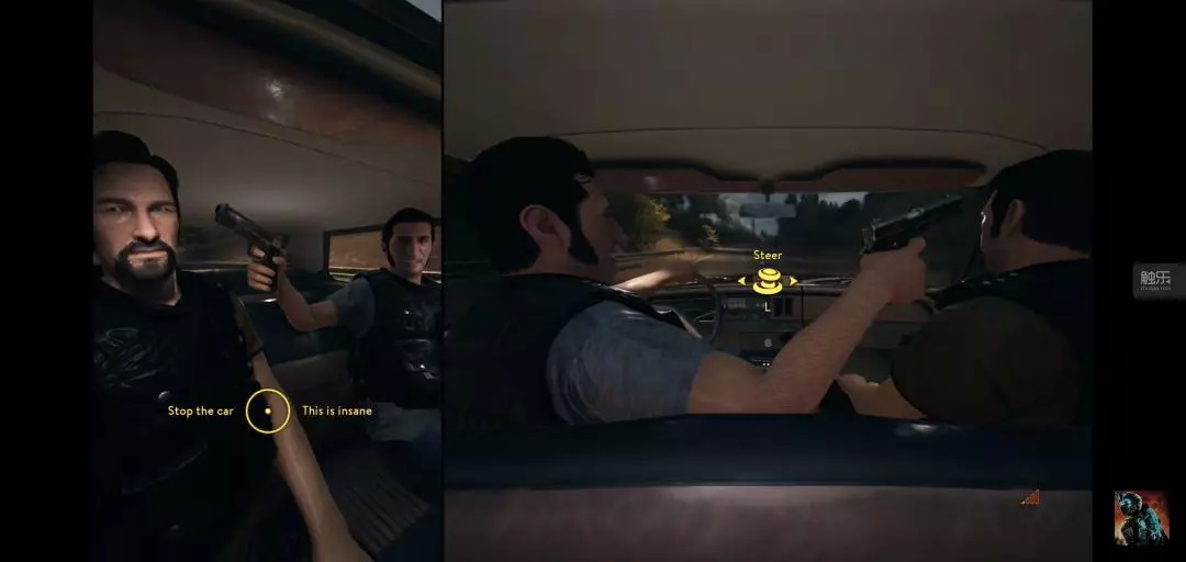 相比于《兄弟》的一人“精分”操作,《A Way Out》的特色是强制分屏。这个设计让我觉得很奇怪,一款游戏为什么需要全程分屏呢?怕不是一个宣传的噱头吧?但在游戏正式开始之后,所有的疑虑都被精巧的设计打消了。