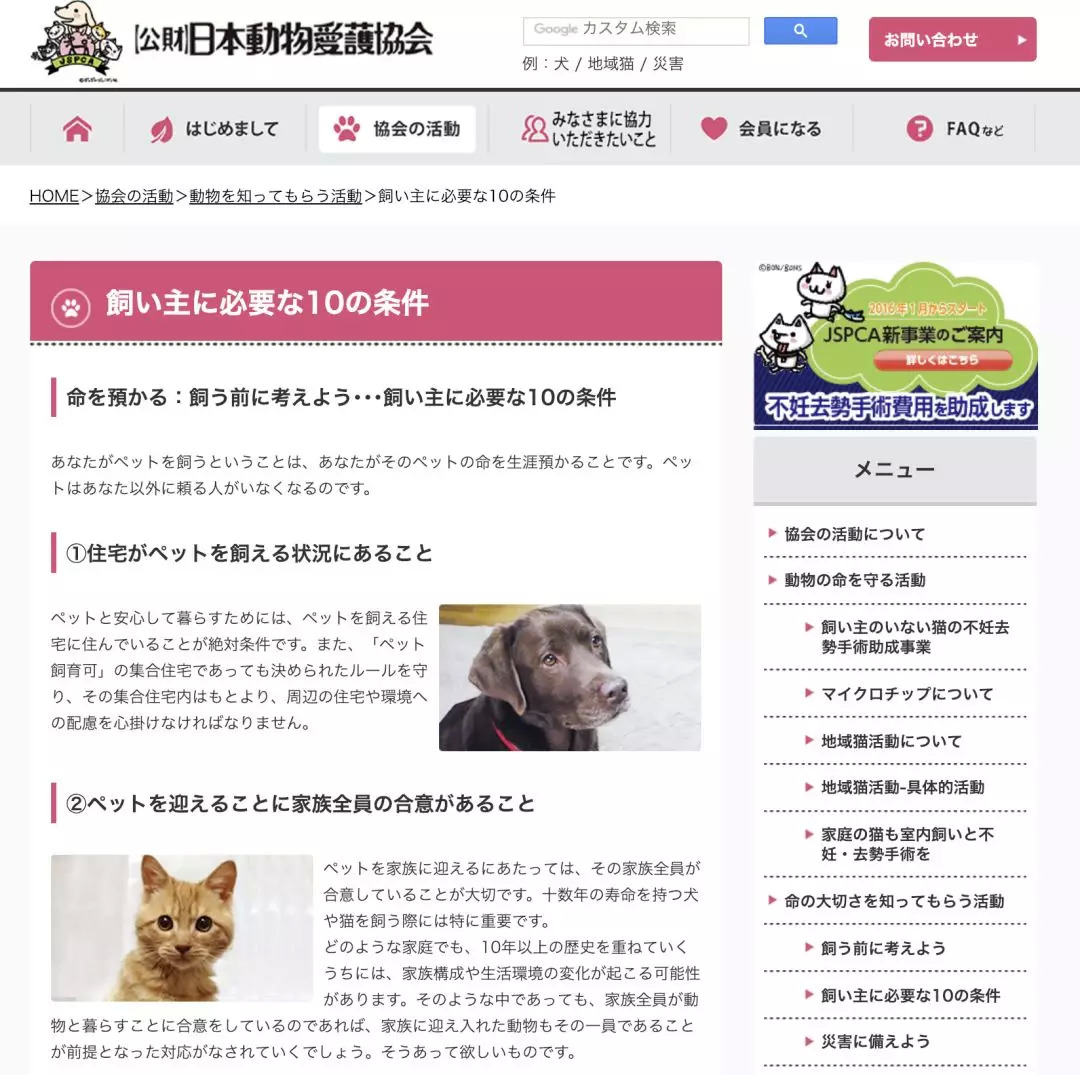 ▲ 日本动物爱护者协会例举了成为铲屎官的10个条件。日本宠物爱护协会官网