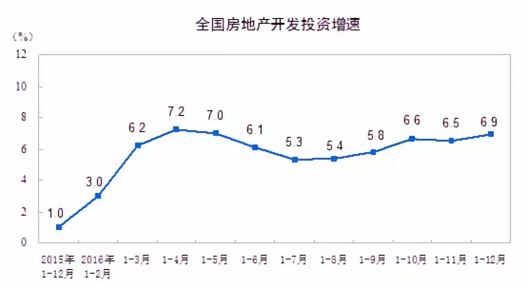 2016年全国房地产开发投资增速,图来源于国家统计局