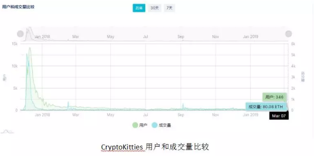 而且,区块链游戏存在一个现象,即用户流失很快,就连曾经很火热的CryptoKitties,现在也只能保持在300人左右的日活。