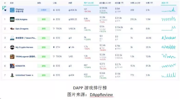 在DAppReview网站统计的1918款应用里面,游戏有457个,但绝大多数的游戏用户都是0,日活跃用户最高的EOS Knights也才6800人。这个用户量在DAPP里面也不算少,但是与同类型传统游戏相比,就显得不值一提。