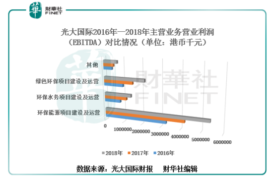 其次是绿色环保项目建设及运营是公司的第二大收入及营业利润(EBITDTA)来源。截至2018年底,该业务全年实现收入为69.99亿港元,同比增长52.82%,占总营业收入比重为25.71%;营业利润(EBITDTA)为21.79亿港元,同比增长41.22%,占总营业收入比重为22%。