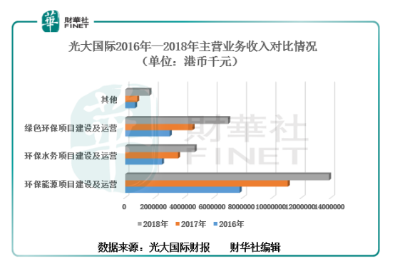 光大国际现主营从事包括垃圾发电、餐厨垃圾处理、垃圾分类、环卫一体化、污水处理、中水回用、供水、水环境综合治理、生物质综合利用、危废处理、生态修复、光伏发电、风电、技术研发、规划设计、装备制造、分析检测、环保产业园等。从主营业务收入上看,公司收入来源可分为三大主营业务,即环保能源项目建设及运营、环保水务项目建设及运营及绿色环保项目建设及运营。