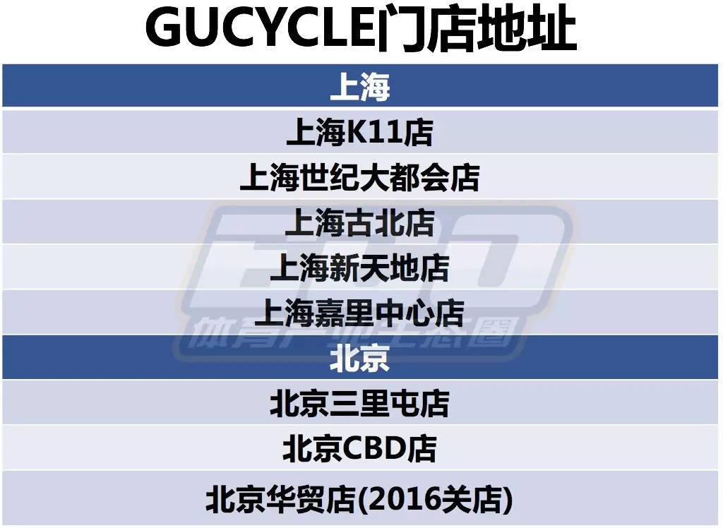 ↓GUCYCLE门店地址来看,多位繁华地带
