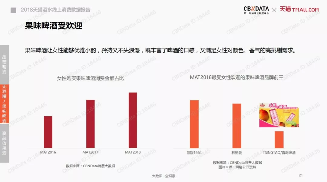 Data君发现,国货之光青岛啤酒已经有了定制化产品的思路,推出了符合年轻女性消费者的果味啤酒,受欢迎程度仅次于来自欧洲的两大老牌子。