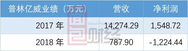 调整相关协议之后,公司合并普林亿威产生的商誉减少至1.275亿,可即便修改了业绩承诺,普林亿威也未能达到预期。根据财报,普林亿威2018年营收约787.9万元,同比减少94.48%,亏损约1,224.44万元。
