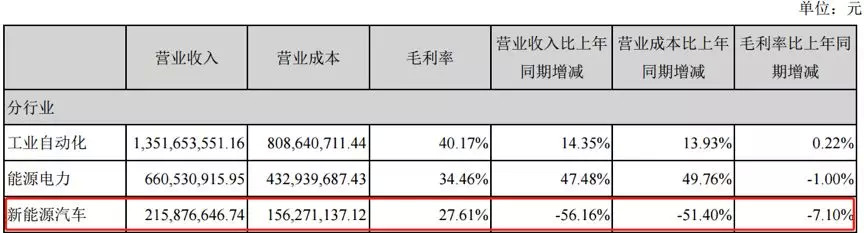 2018年,公司新能源汽车业务营收同比下降56.16%至2.16亿元,同时该业务毛利率比上一年减少7.1%。