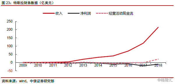 2013~2016年:model S等车型开始批量交付,公司营收快速增长,但利润、现金流指标仍不理想。在此阶段,公司产能数据、销量数据成为市场关注的核心指标之一,市场借助上述指标表现,不断修正特斯拉在全球市场的潜在市场份额预期,并借此修正估值。
