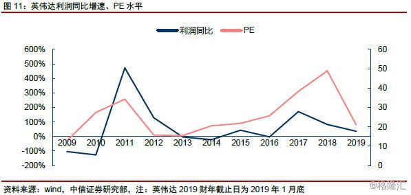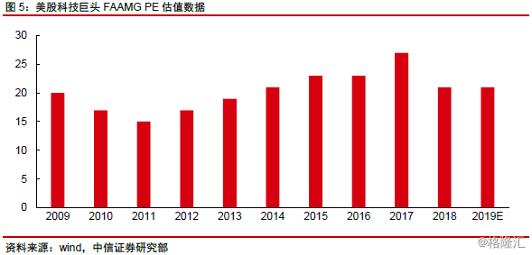 对于有盈利的成长型或成熟型企业来说,以企业盈利为基数,进行PE估值或PEG估值,是当前市场市场最为常见的情形。同时,不同行业属性可能导致PEG折价或溢价。目前美股市场大部分科技公司,均采用该类方式,典型代表企业如2C市场的苹果、Facebook、腾讯等,以及2B市场的英伟达、台积电、安费诺等。