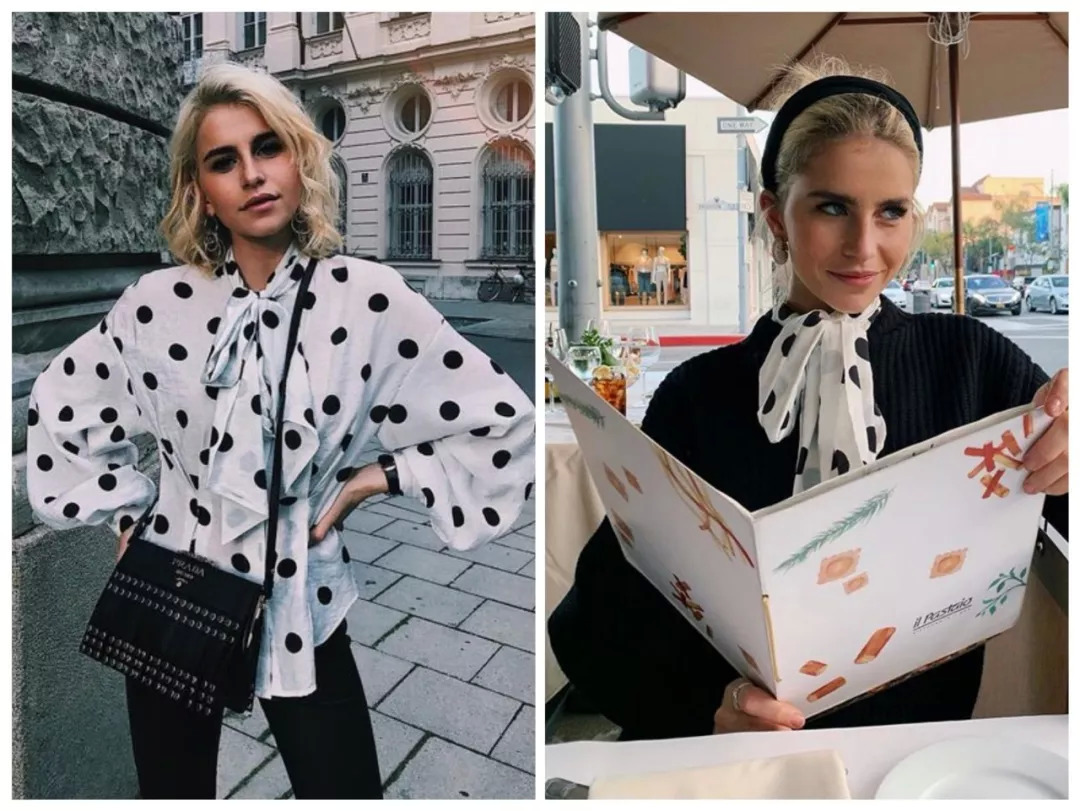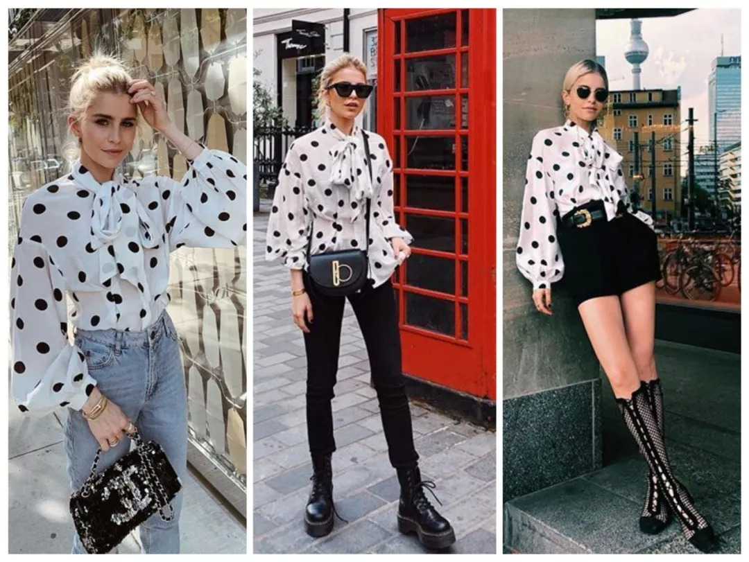 首先,一定要选择类似波点的设计;同时,一定要配酷酷的中性风单品。