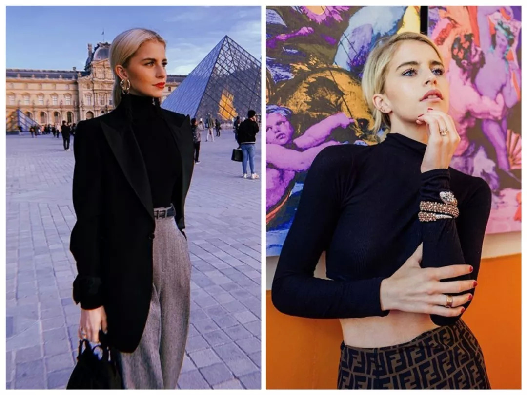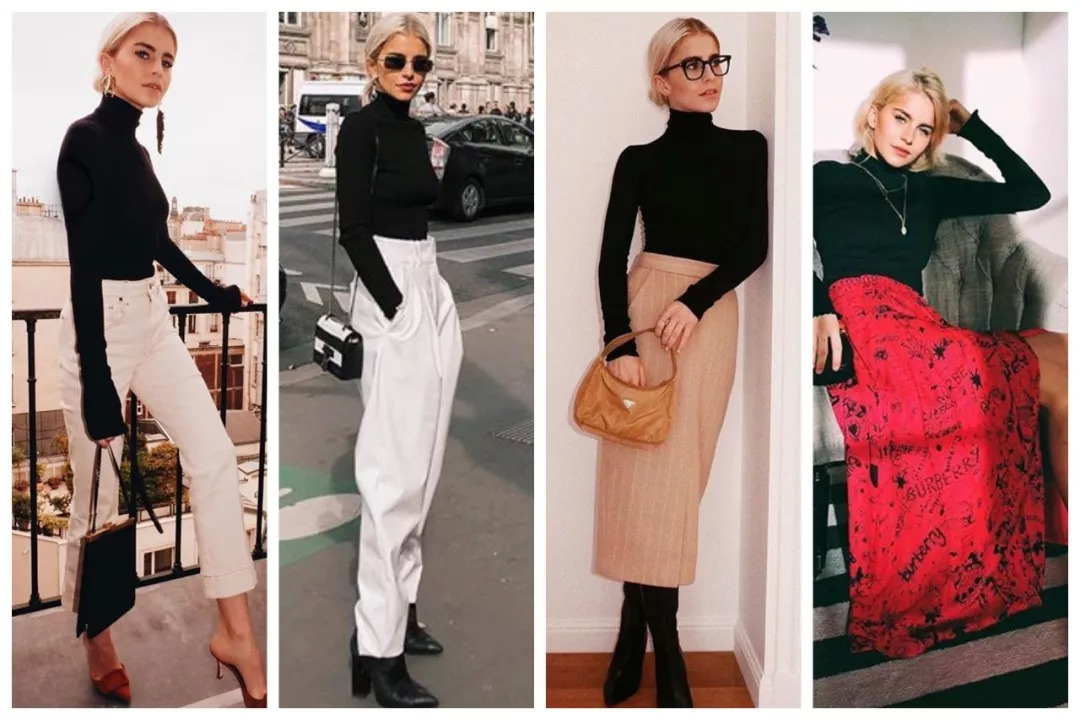 对Caroline Daur来说,黑色打底衫也只需两件即可。高领Crop top负责性感,修身基础款负责率性。