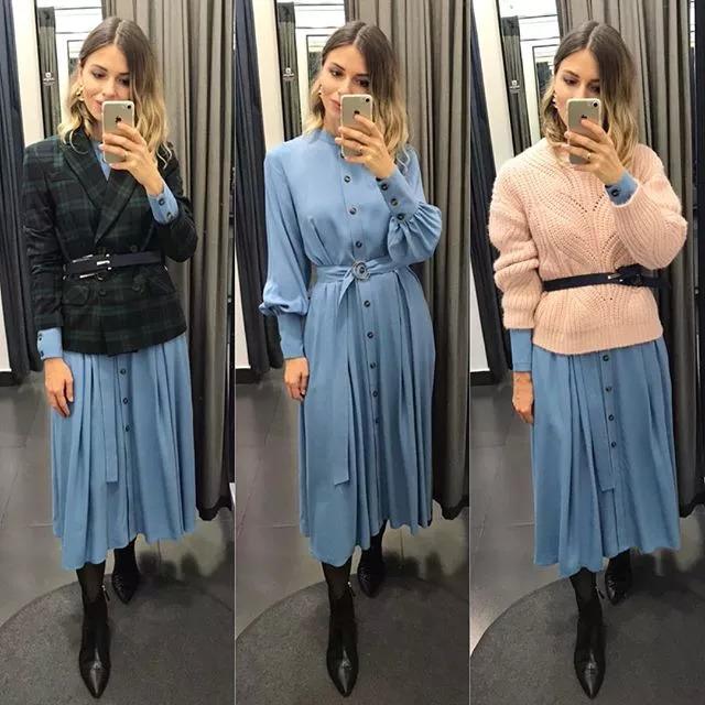 之所以喊她“宝藏女孩”,是因为她经常穿流行款,但都来自Mango、Topshop这些快时尚,同时还会“一衣多搭”。