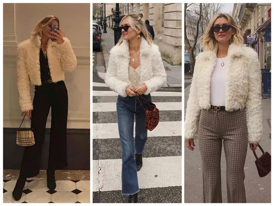 这件毛毛外套好看吧?Miss 烧饼本以为是某个贵贵的小众品牌,没想到居然来自Topshop!搭配高压喇叭裤,显腿长又复古~