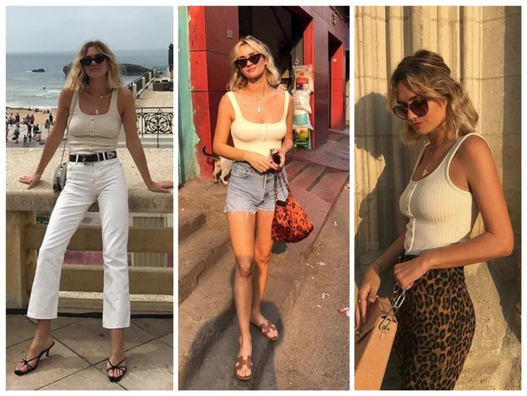 这件白色纽扣针织吊带,出镜率贼高!!来自Mango~~夏天搭配各种裤装,整个人就像天气一样辣!