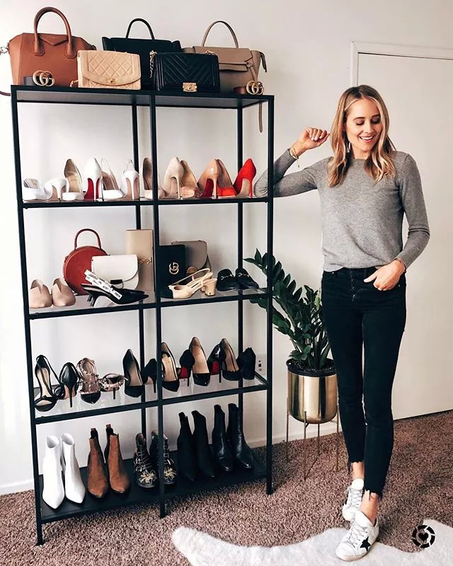 她绝对是博主里,少数真正做到“少而精”的人。最近才刚晒过自己的鞋包柜,表示比Miss 烧饼的还精简。