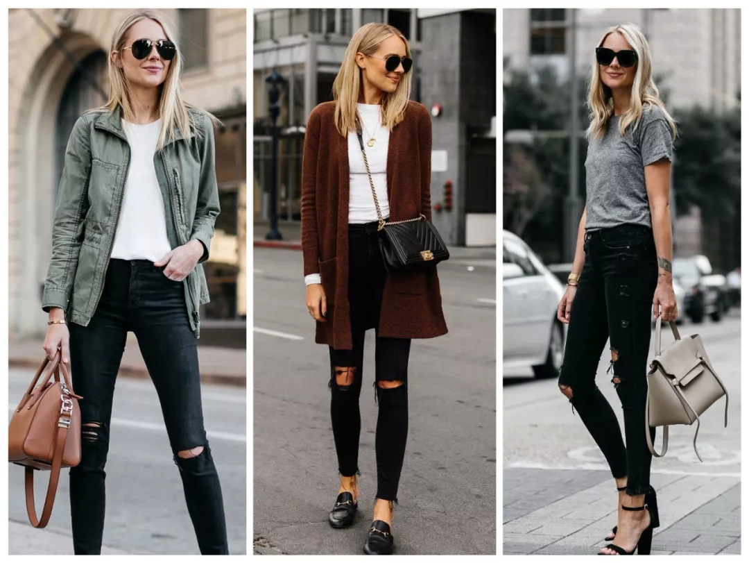 它是最最基础的炭黑色,因为做了破洞和须边细节,搭配简单的上衣也不会特别路人。