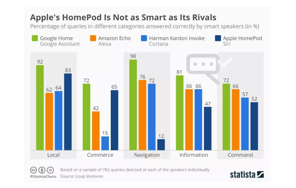 苹果进入AI语音领域也不晚,可惜Siri一直不尽如人意,而姗姗来迟的HomePod智能音箱也被认为不够智能,备受诟病。