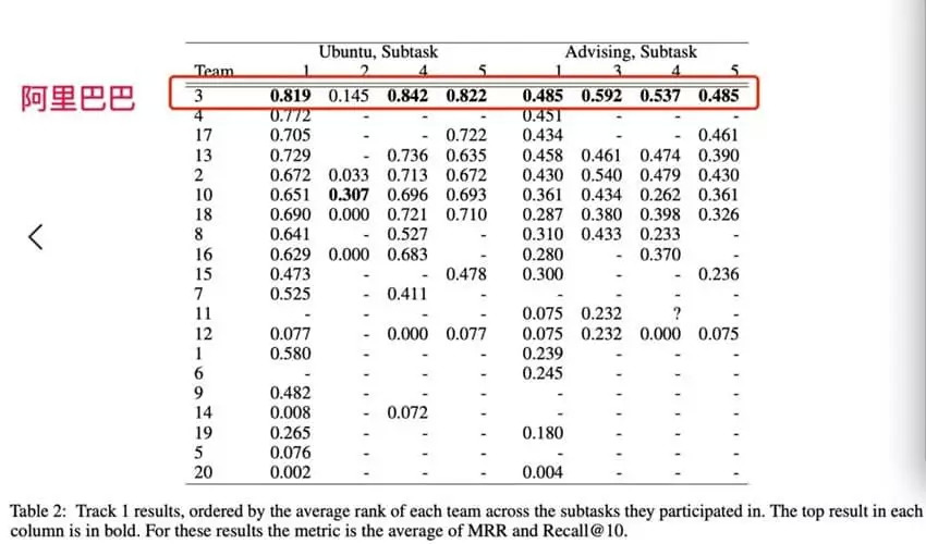 今年年初,阿里AI又在国际顶尖人工智能学术竞赛——第七届对话系统技术挑战赛(DSTC7)中击败了包括麻省理工学院、约翰霍普金斯大学、IBM研究院在内的近20支国际知名大学或研究机构的参赛队伍,获得双料冠军,成最大赢家。DSTC7由来自微软研究院、卡耐基梅隆大学的科学家于2013年发起,在业内具有较高的知名度。