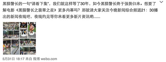 而在新闻综合的“夜线约见”栏目中,现任美影厂的厂长钱建平也解释了此次《黑猫警长》在电影制作方面的一些细节。