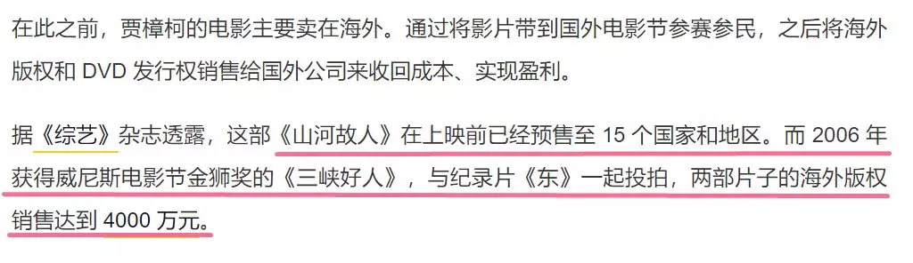 以贾樟柯的《江湖儿女》为例,这部影片虽然仍是文艺片,但高达8000万的制作成本造价不菲,这类影片在和大公司合作,无论是在投资还是宣发上,都能为影片提供更多助力。
