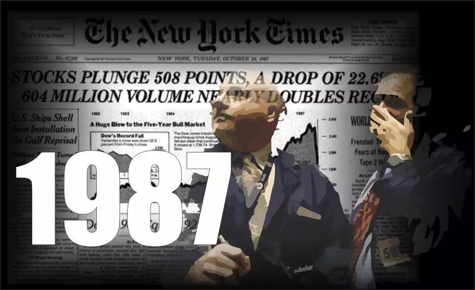 纽约股票交易市场保持很久的牛市在1987年10月19日星期一这一天惊人下落,道·琼斯工业股票平均指数骤跌508点,下跌幅度22%,一天内跌去的股票价值总额令人目瞪口呆。这是1929年华尔街大崩溃时跌去价值总额的两倍。混乱中,价值超过6亿美元的股票被抛售。纽约股市的震荡甚至在东京和伦敦也深受影响到。伦敦的FT指数滑落250点,甚至威胁到了政府对英国石油股份公司的私有化的进程。