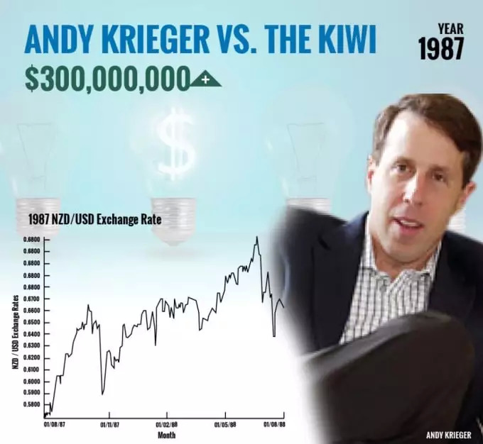 外汇交易员,无论是新手亦或职业交易员,都希望自己有朝一日能成为一名超级交易员,他们中的大多数人都渴望有生之年能有一笔大交易能改变他们的生活,让他们的名字在外汇市场上永垂不朽。但愿望是一回事,实现预期目标则完全不同。今天,汇商君就将为大家介绍一位靠做空纽元为公司净赚3亿美金交易员,安德鲁·克利格(Andrew Krieger)的传奇经历。也许各位能从他的交易经历中获得更多交易灵感。