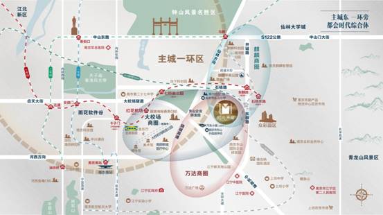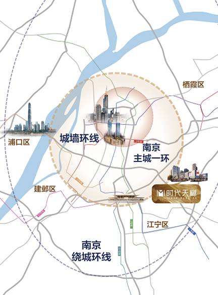 时代天樾正处于大桥机场CBD、麒麟CBD以及万达CBD交汇处,是江宁、玄武、栖霞、秦淮四区的交界处。更是东南科技创新示范带的核心枢纽区,联系大校场板块的重要沟通点。