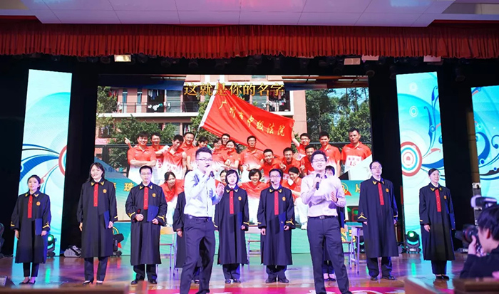例如我们的院训,在第二段词中加入了“厚德尚法,笃行慎断,世代穗法人薪火相传。”