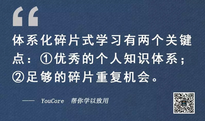 但如果能做到体系化碎片式学习,你就可以用最少的重复,将理论内化为自身的习惯!