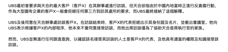 在参与天合上市申请中,香港证监会明确表示UBS存在保荐人缺失问题。UBS作为天合上市申请的联席保荐人之一,使天合介入尽职审查访谈。且没有处理访谈中的预警迹象,访谈问题模糊不清。