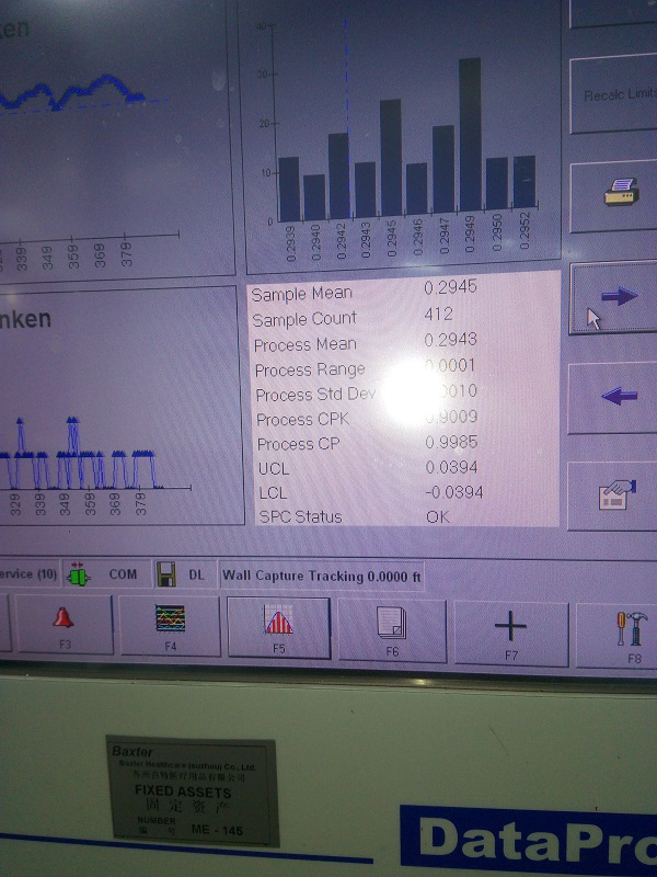 而黄先生表示,根据要求,该产品的CPK制程能力指数必须大于等于1.33,也就是说实际上该批次产品不合格。其所提供这张CPK检查表在表头也有备注“CPK must≥1.33”的字样。而他所提供的另外两张图片中显示CPK数值分别为1.2584(2018年9月2日18时01分)(图3)和0.9009(2018年9月2日18时19分)(图4)据他介绍,CPK制程能力指数是输液管产品壁厚的一个平均参数值,该数值小于1.33会存在漏液风险,而这三张图显示CPK数值长时间不合格。