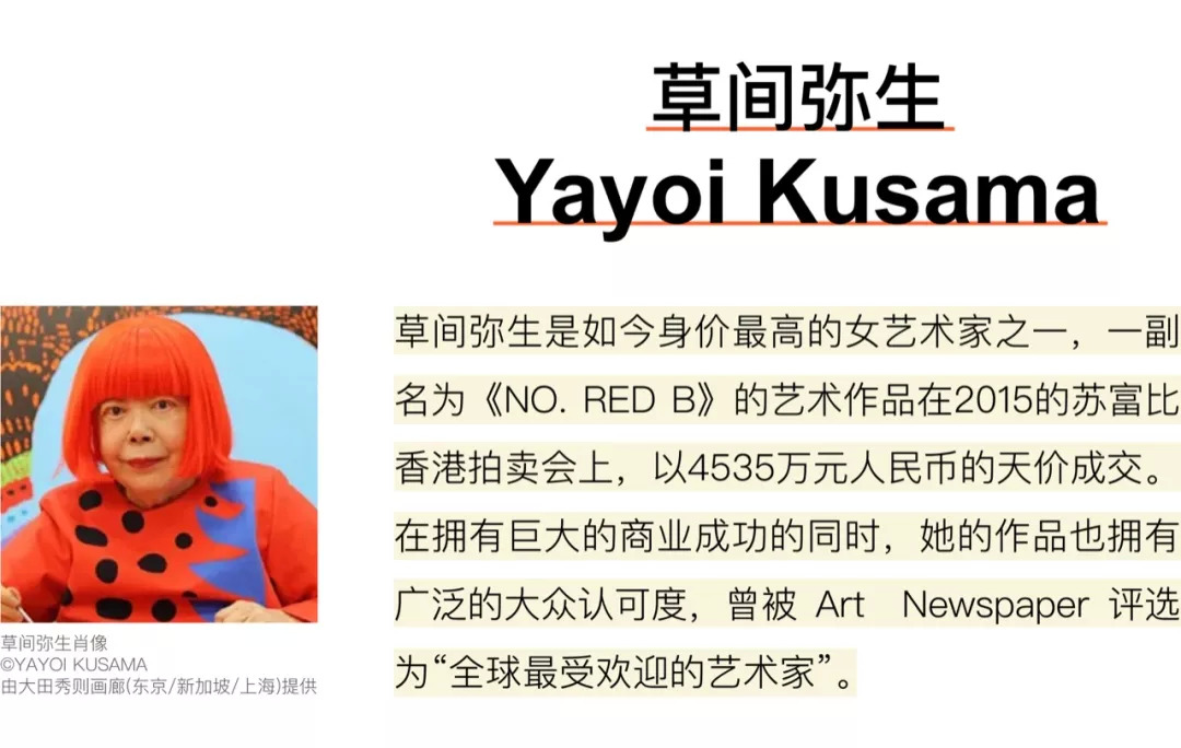 在她于纽约、东京的个展中,都需要提前数月预约或者排好几个小时的队,吸引了超过500万人观赏。
