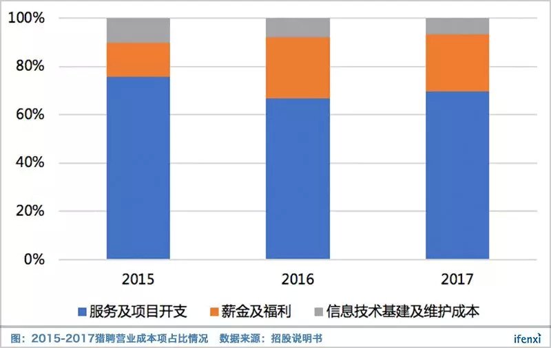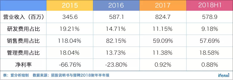 在猎聘登陆港交所前,累计融资近2亿美元,而2015-2017财年营销费用均超4亿元,占收入比例118%、82%和59%,生生地用钱砸出来个IPO。