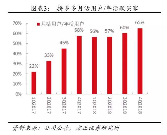 国内的方正证券在报告中指出,2018 年公司的整体货币化率为 2.78%(广告 2.44%、佣金 0.34%),比 2017 年提升了 1.55 个百分点,“根据我们的测算,Q4 单季度的货币化率相比前两个季度有所降低,是公司为了吸引更多优质商户和商品给予了一定优惠政策所致,2018Q4 的年活跃卖家数达 360 万家,比 Q1 的 100 万家翻倍成长”。