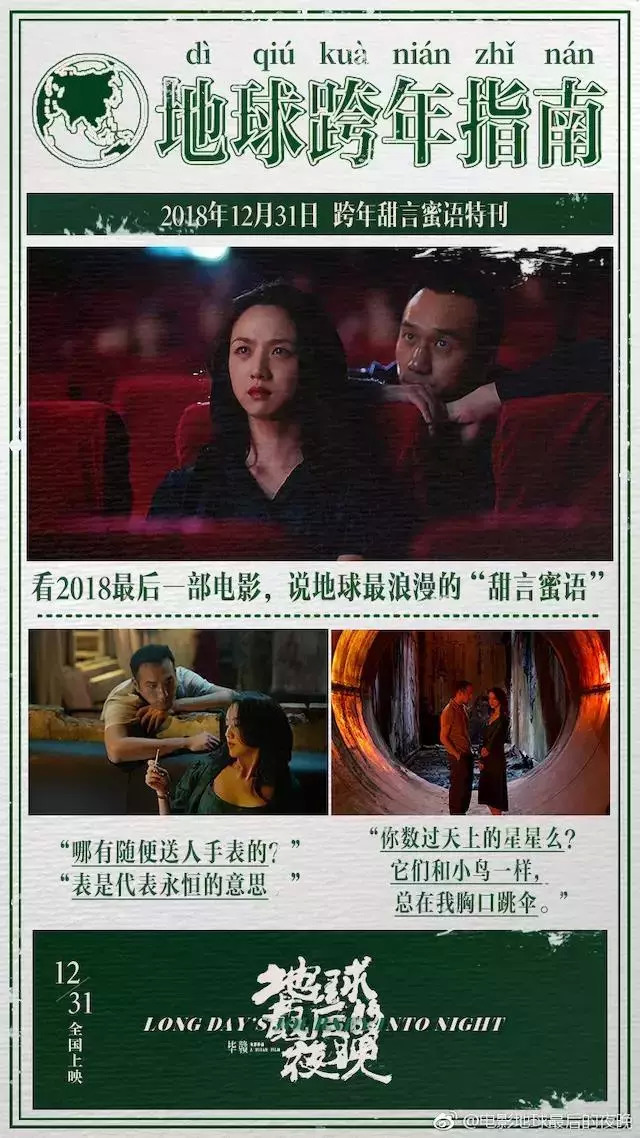 一吻跨年:在电影上映前夕,官方开始狂轰乱炸般疯狂主打爱情元素。