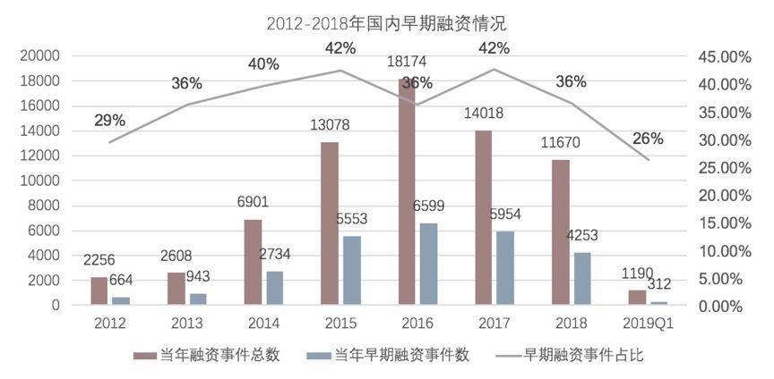 注:此处早期融资事件指包括天使轮,种子轮,Pre-A轮在内的所有A轮前(不含A轮)融资事件;融资事件指IPO前(不含IPO)融资事件。数据来源:企名片