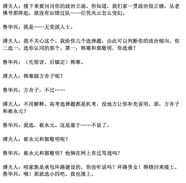 例如:有关女主母亲询问男主角政治立场的段落,周黎明就借用了那些曾令朋友反目、夫妻成仇的网络骂战来代替原文,还不忘在最后安利了一下自己的上一部作品《环路男女》。