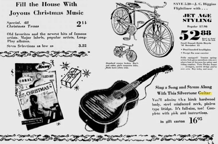 在 Sears 的产品目录上,吉他和自行车一起卖