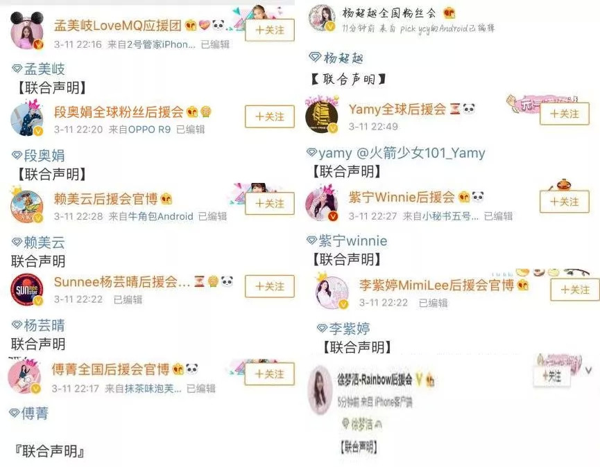 而在整个抗议过程中,粉丝们把矛头的另外一端则指向了哇唧唧哇。各家粉丝应援团对于哇唧唧哇一直以来“不上心”的态度表示了强烈的不满,并且还有很多粉丝又一次罗列出了哇唧唧哇在对火箭少女经纪运营中所出现的问题。
