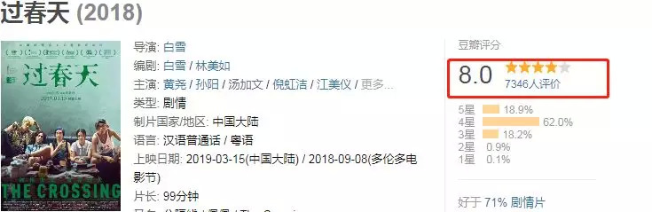 上映第一天,得分8.0,好于71%的剧情片;