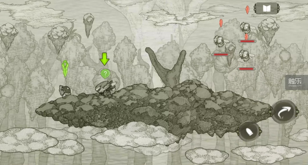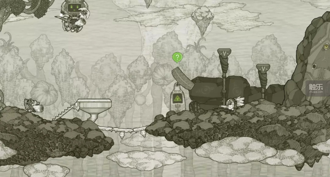 手绘风格带来的不仅仅是“看起来比较舒服”,更重要的是它让场景和可互动目标更加协调。在很多游戏中,玩家往往一眼就能发现场景、敌人和陷阱在画面上的差异,虽然其中有的是为了让玩家更顺畅地游戏,但看上去总是有些奇怪。《原始旅程》的画风则高度一致,怪物、NPC、陷阱、场景的风格是统一和融洽的,不会有太多违和感。
