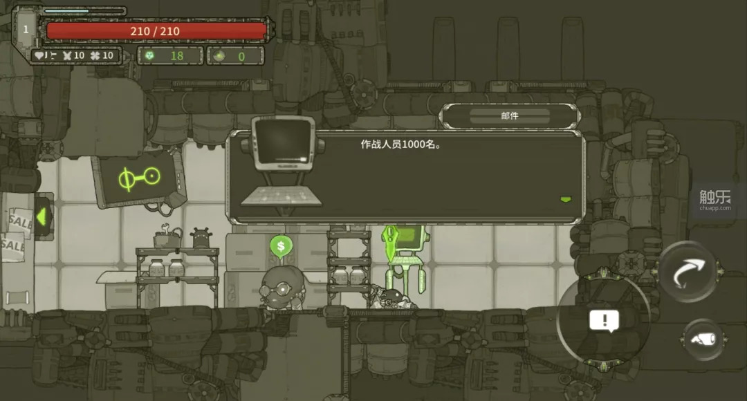 难以适应的原因一方面是习惯(之前玩的游戏不是这样的),另一方面则是屏幕虚拟毕竟比不上摇杆,我在游玩时经常出现在右屏按错键的情形。更重要的是,刚开始会很难流畅做到“跳起来射击”这个操作,因为松开开火键进行跳跃后,需要重新调整射击方向,这就需要多次练习才能顺利做出这个动作。
