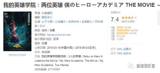 这个殊荣属于《我的英雄学院》,作为刊登在日本知名漫画杂志《周刊少年Jump》上的连载漫画,以其热血的故事风靡日本。首部剧场版《我的英雄学院:两位英雄》去年3月8日在日本上映,票房16亿日元,约合人民币9760万元。早早就闯进日本动画电影前十五位的《我的英雄学院:两位英雄》,一年后也登陆国内大银幕。