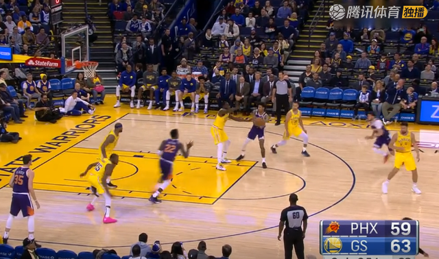 如图所示,当卡佩拉在强侧去和保罗做挡拆配合时,这一动作完全吸引了勇士队所有人的注意力。所以,当弱侧底角的香波特突然提上去做掩护时,没人注意到,神不知鬼不觉。