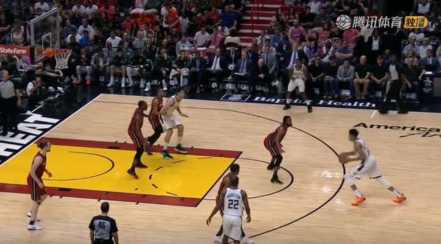 比如上图这次,热火选择用联防来对付字母哥,试图用局部人数优势来提前堵截字母哥。但是,联防的沟通是比较难的,而且因为很少用所以各队大多都并不熟练。所以热火这次弧顶没沟通好各人该站在哪里,本来该是双人夹击结果变成无人夹击,字母哥直接冲框。
