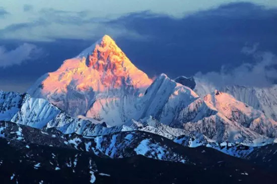 地理位置:四川省康定以南,是大雪山的主峰,也是横断山区的最高峰。耸立于群峰之巅,被喻为“蜀山之王”