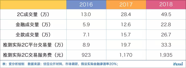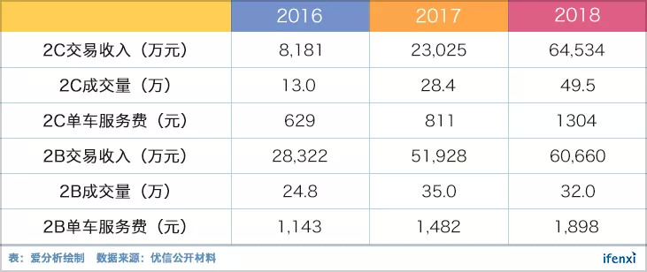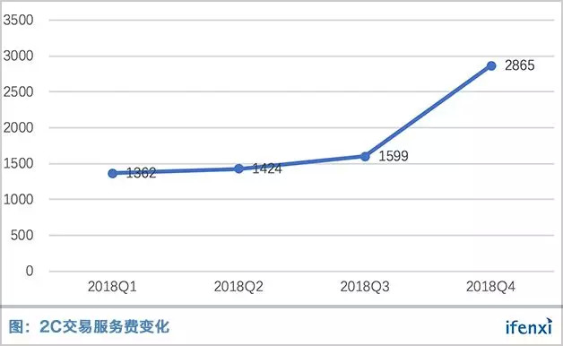 按照上述推测逻辑,可以看出优信的2C交易服务费在2018年四季度有明显提升,推测应与力推全国购产品有关。