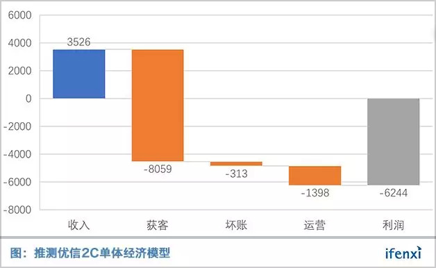 如果以M3+定义坏账,优信金融的单体经济模型中坏账成本约为1,570元,均摊到2C平台的单体经济模型,坏账成本约为313元。